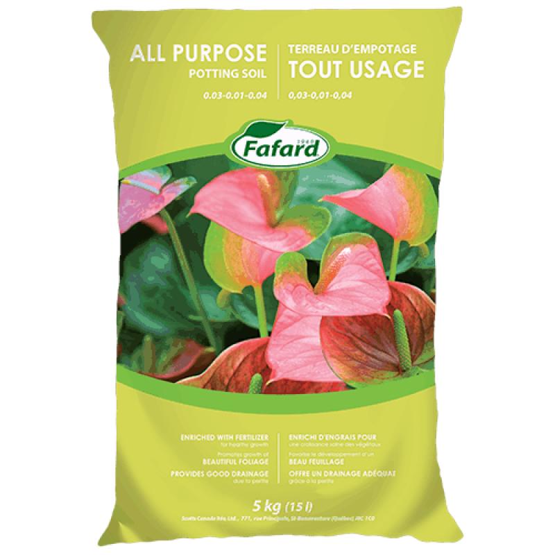 The ALL PURPOSE Potting Soil is specially designed for potting a wide range of tropical and indoor plants. This peat moss based soil is enriched with fertilizers that promote the development of beautiful foliage.