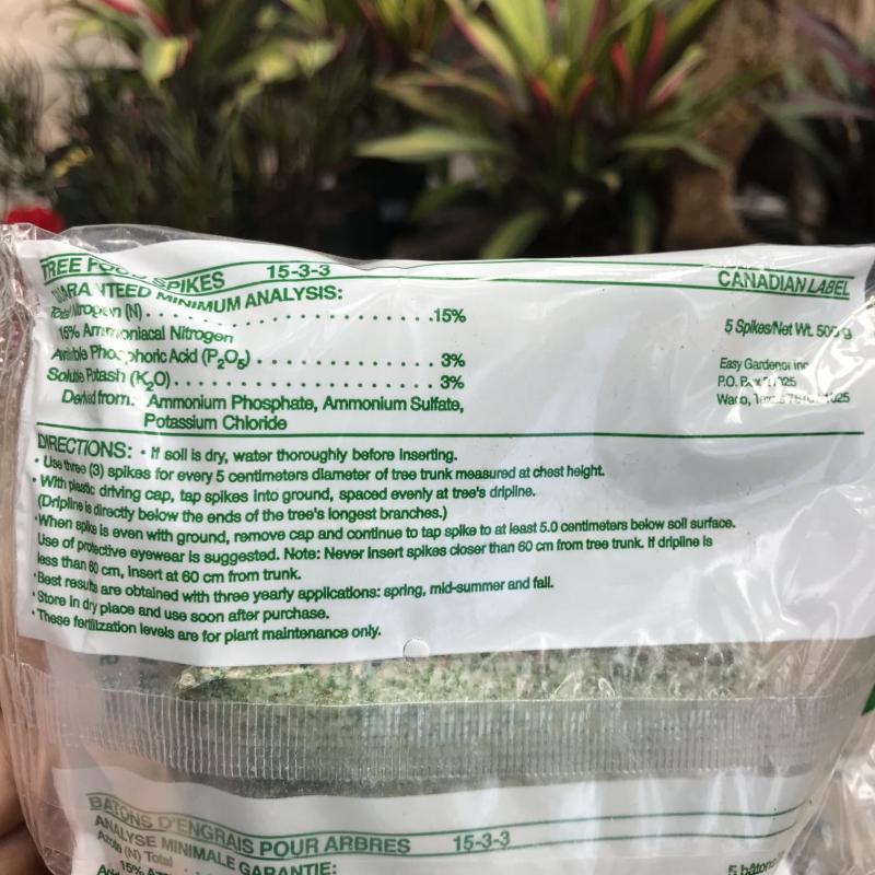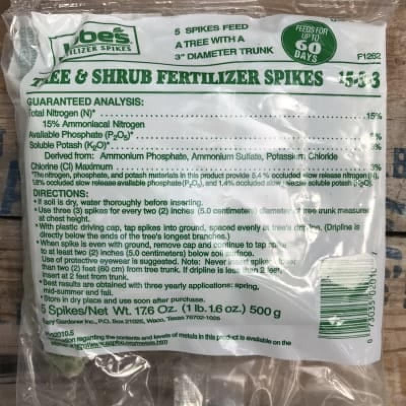 Pre-measured fertilizer spikes provide time-release fertilizer right at the roots for all trees and shrubs.