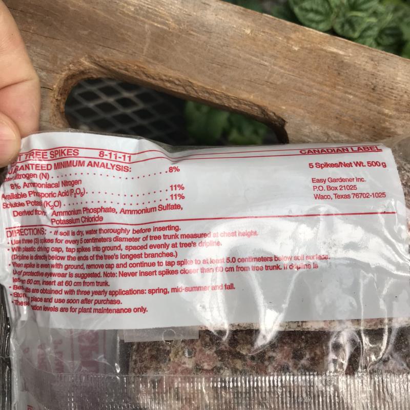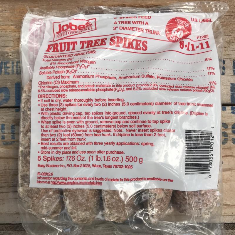 Jobe’s spikes are easy to insert around each tree’s dripline, and the slow-release formula feeds all season.