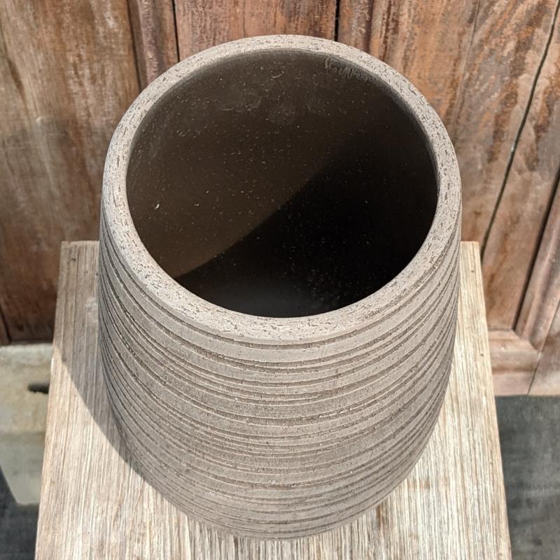 Italian Clay Pot Groovy Vase Grey 5"
