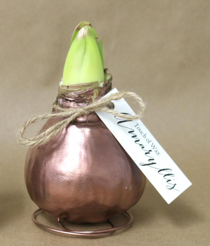 This easy-care amaryllis is perfect for gardeners old or new! Dipped in a wax coating and fastened to a coiled wire stand, you don’t need to do anything but watch as the bulb sends up striking green shoots and beautiful blooms! Simply place it on any flat surface, set it in a clear vase, or nestle it among other holiday decorations, and wait for shoots to emerge. Stunning red flowers will begin to bloom in four to six weeks.