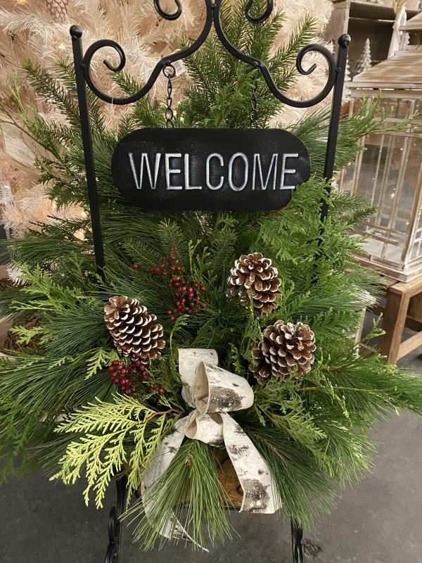 your very own beautiful outdoor evergreen arrangement in an all-season iron