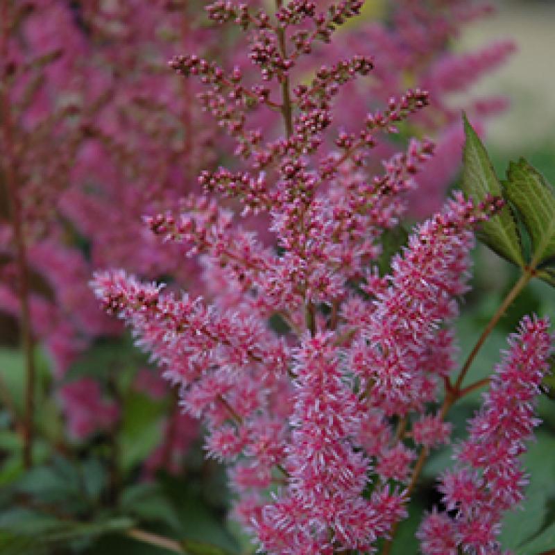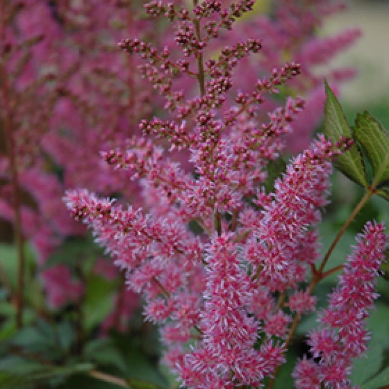 A member of Astilbe Chinensis (Chinese Astilbe). A later blooming species useful for extending the bloom season into late summer. Foliage is deeply incised, coarsely textured, and often bronze-green in colour. Flowers are borne on narrow, branched panicles. Though garden performance is far superior in moist soils, members of this species are moderately drought tolerant. Shorter varieties such as 'Pumila' make excellent groundcovers.