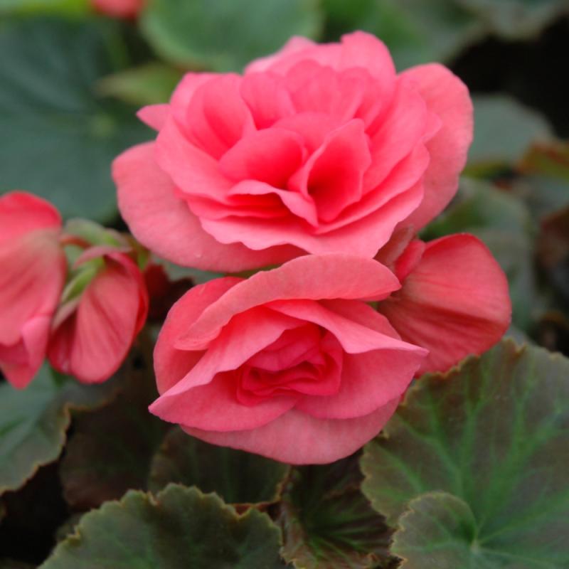 Beautiful light pink blooms stand out on top of deep dark green colored leaves