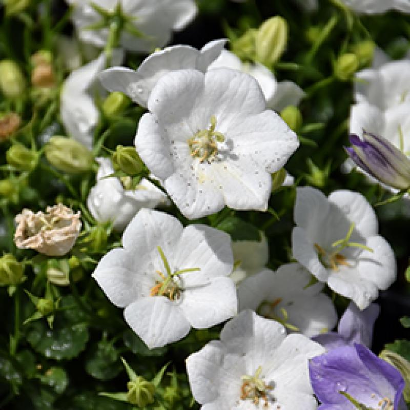 One of the earliest blooming C. carpatica types on the market with good vigor and uniformity. 1-1½" cup shaped, pure white flowers and dark green foliage