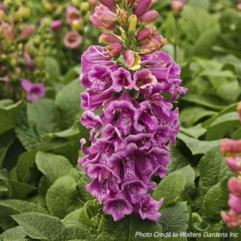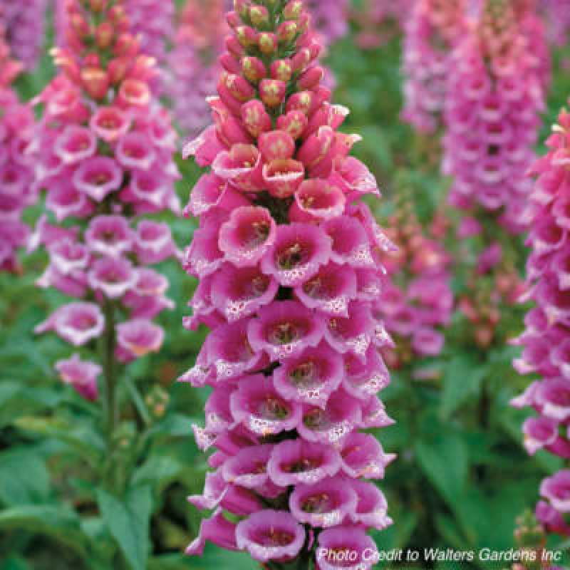 A rare first! 'Candy Mountain' is the first foxglove ever to have upward-facing flowers instead of the usual downward-facing ones. With this new angle, viewers can easily see the beautifully speckled throats of these rose-pink blossoms. They are produced on very strong, strictly upright stems in early summer. This variety is a biennial.