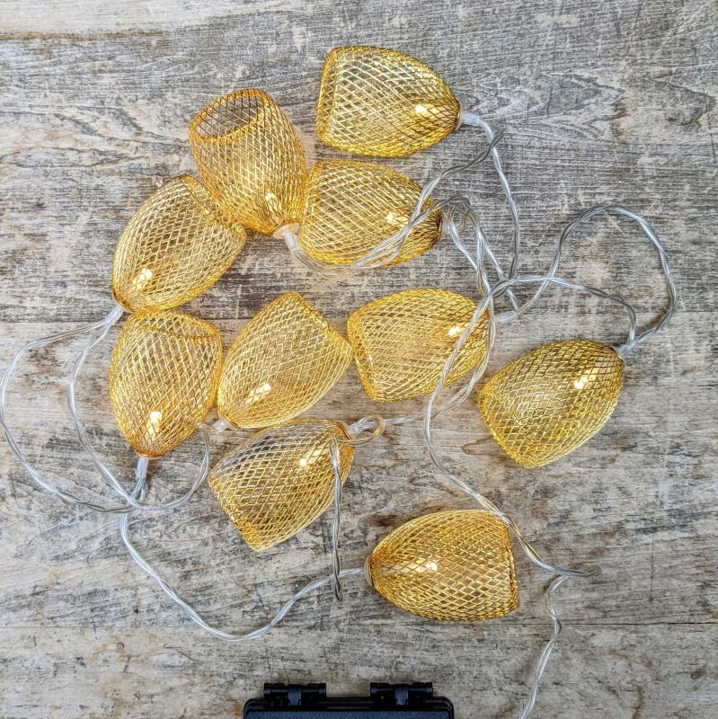 String Lights Metal Mesh Gold Battery Operated
