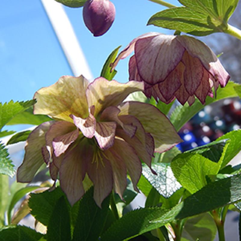 Helleborus ‘Maid of Honor’ ranges in colour from light to dark pink, bearing 2-3” double flowers.