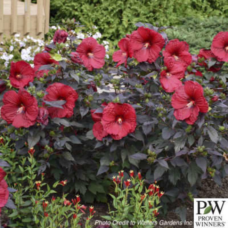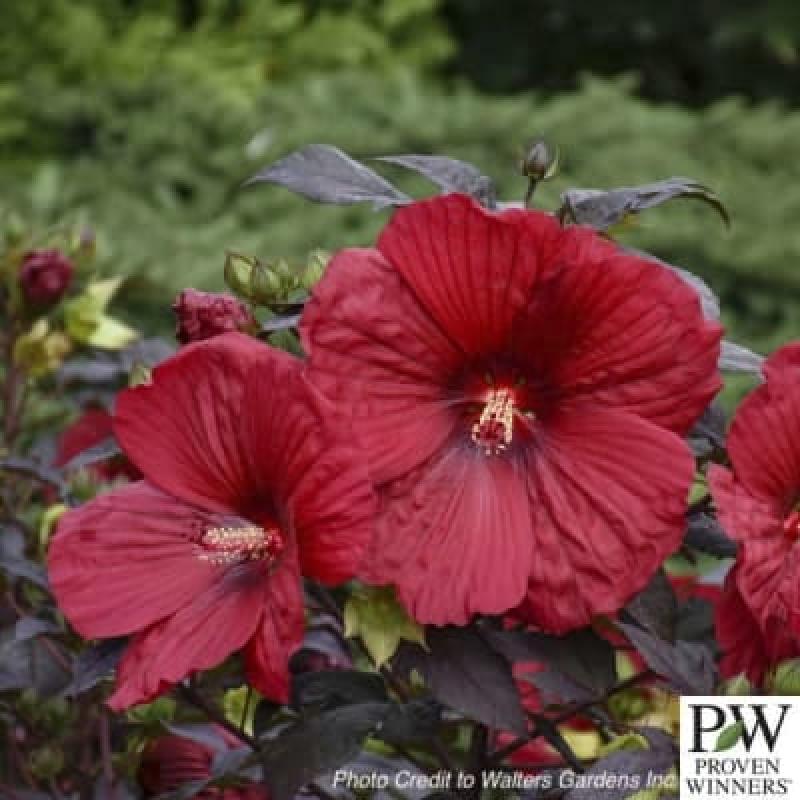 We called this hardy hibiscus "the holy grail" from its inception because we knew we had something special. There's a whole lot to love about this plant, beginning with its incredible dark, near-black foliage of beautiful, oval-shaped leaves. Rich, deep red flowers are enormous at 8-9 inches across. The red and black colours perfectly complement each other. As an added bonus, once the flowers are finished, bright green calyxes starkly contrast the dark foliage. Use in an area with consistent moisture as a focal point to build your garden around.