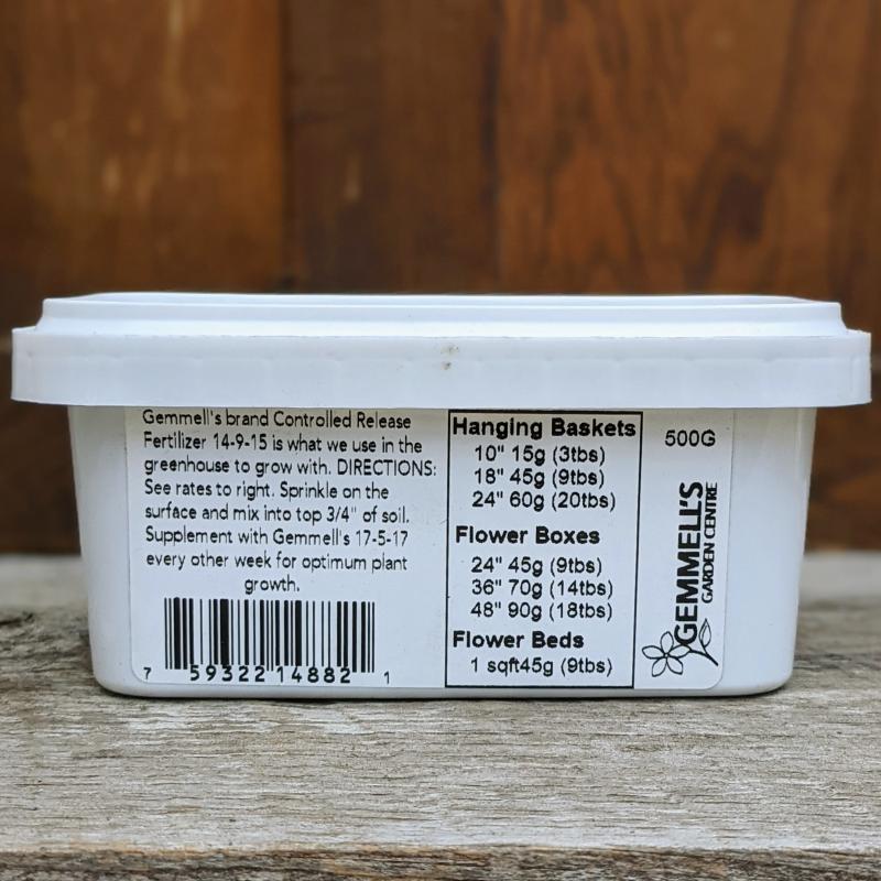 Gemmell's Brand Controlled-Release Fertilizer 14-9-15 is what we use in the greenhouse to grow with.