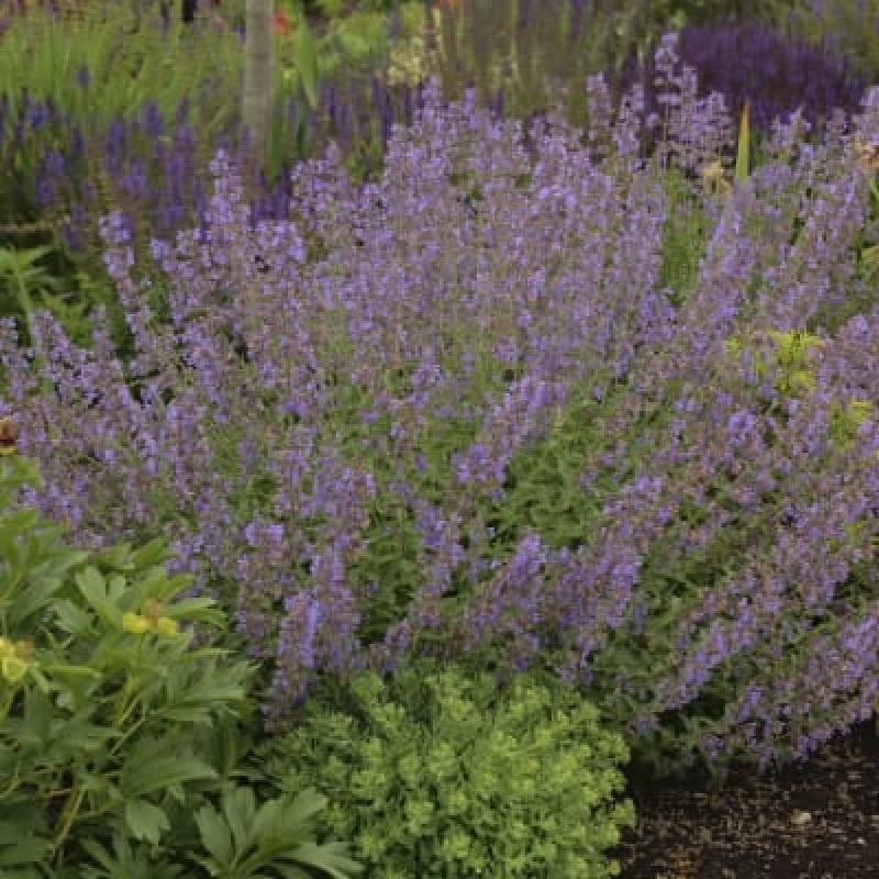 General Information: A profusion of flowers complements fragrant silver leaves and attracts butterflies. Lovely in the herb or flower garden, planted with yarrow and verbena. Shear in midsummer to shape and promote reblooming. The longest flowering of the catmints.