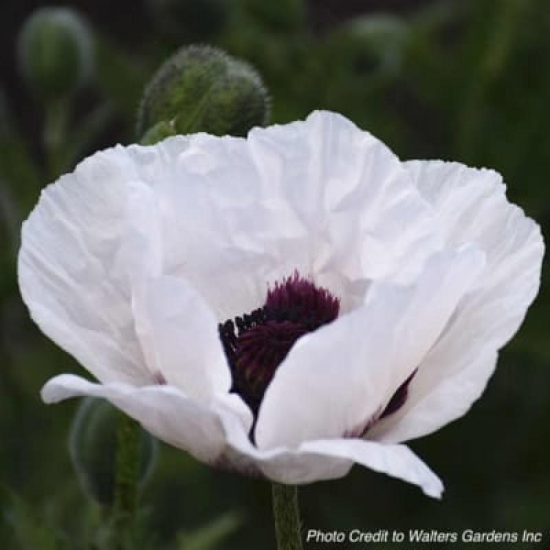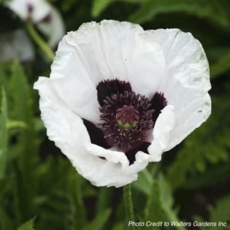 Papery, white, flouncy blooms are borne on wiry, pubescent stems from late spring thru early summer. The petals have a crepe-like appearance and a satiny texture. Each flower can measure 4 to 6 inches across.