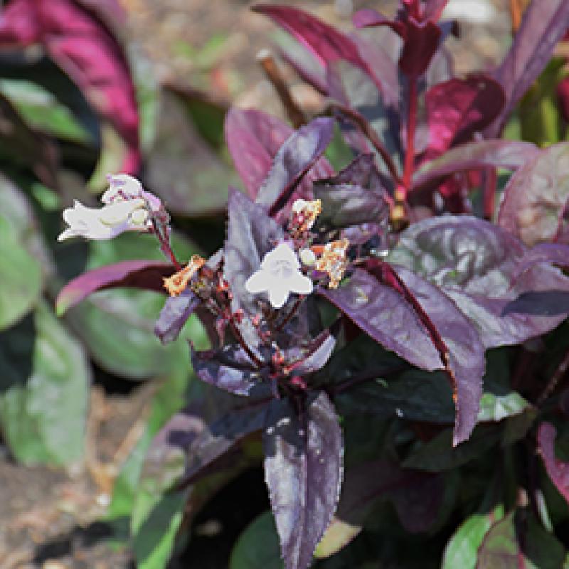 Named after two polar opposite colours of gemstones, onyx is in reference to its dark foliage and pearls refer to its soft lavender flowers with white interiors. From a distance, the flowers look white. Compared to 'Blackbeard', this is a taller, fuller plant with lighter coloured flowers.