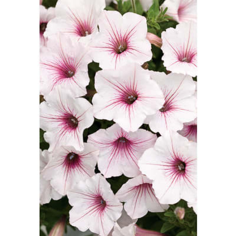 Supertunia Vista petunias are very vigorous, with mounding habits that can reach up to 2 feet in height in the landscape and will trail over the edges of baskets and containers up to 4 feet by the end of the season. They are fantastic landscape plants and are great in large containers, where they function as both fillers and spillers. In garden beds, they will work either in the front or middle of the bed. They have medium-sized flowers.