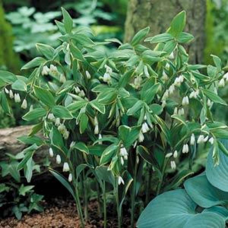 General Information: Graceful, unbranched stems neatly arranged with alternate, oval leaves on one side and clusters of small, pendulous, tubular white flowers on the other. Variegated leaves with dark and pale green streaks and narrow white margins.