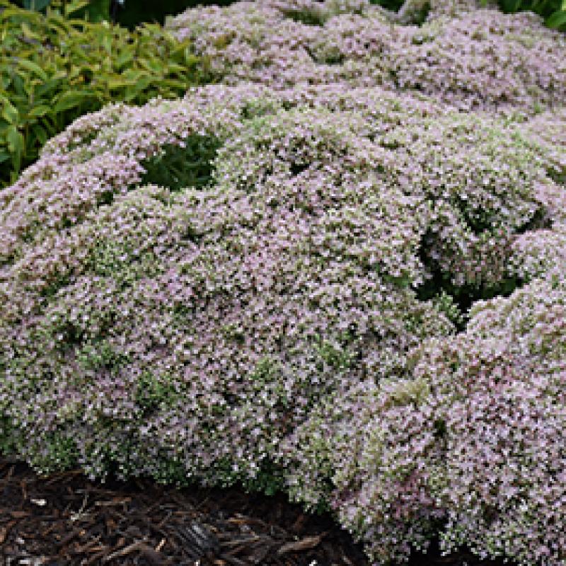 When late summer and early fall arrived, we understood exactly why the breeder had selected this plant for its flowers. A massive dome of bubblegum pink, star-shaped flowers completely covered the foliage followed by deeper pink seed heads later in fall.