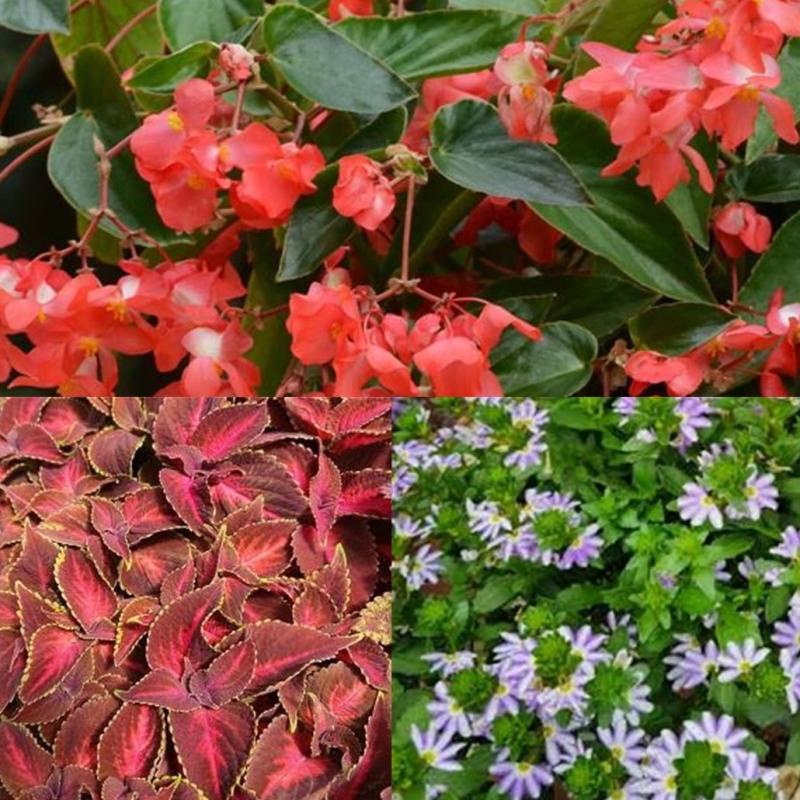 Coleus Kingswood Torch, Begonia Dragon Wing Red, Scaveola Blessing BiColour Lavender