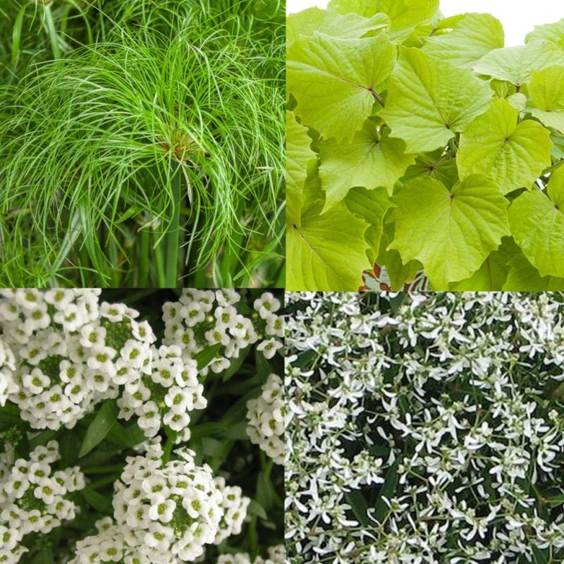Orn Grass Cyperus Prince Tut, Euphorbia Diamond Frost, Ipomoea Sweet Caroline Bewitched Green With Envy, Lobularia Stream White