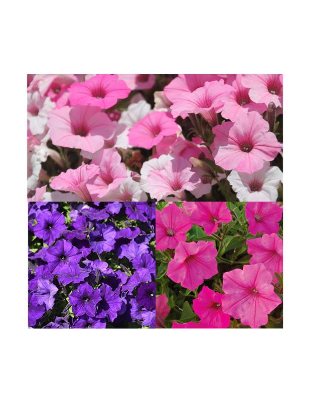 Petunia Supertunia Vista Bubblegum, Fuchsia & Silverberry, Petunia Easy Wave Blue