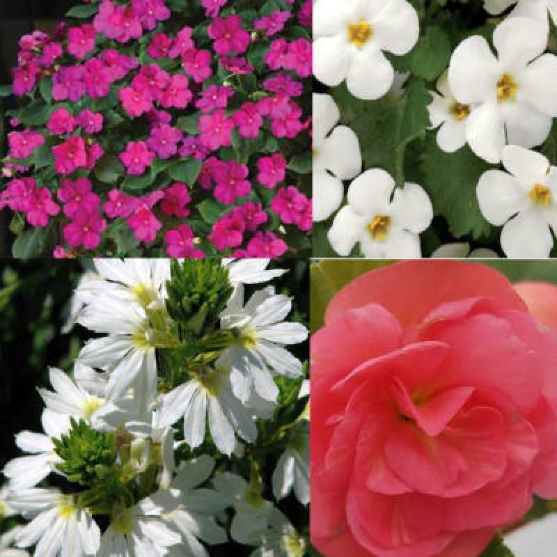Begonia Nonstop Pink, Impatiens Violet Shades, Bacopa & Scaevola White
