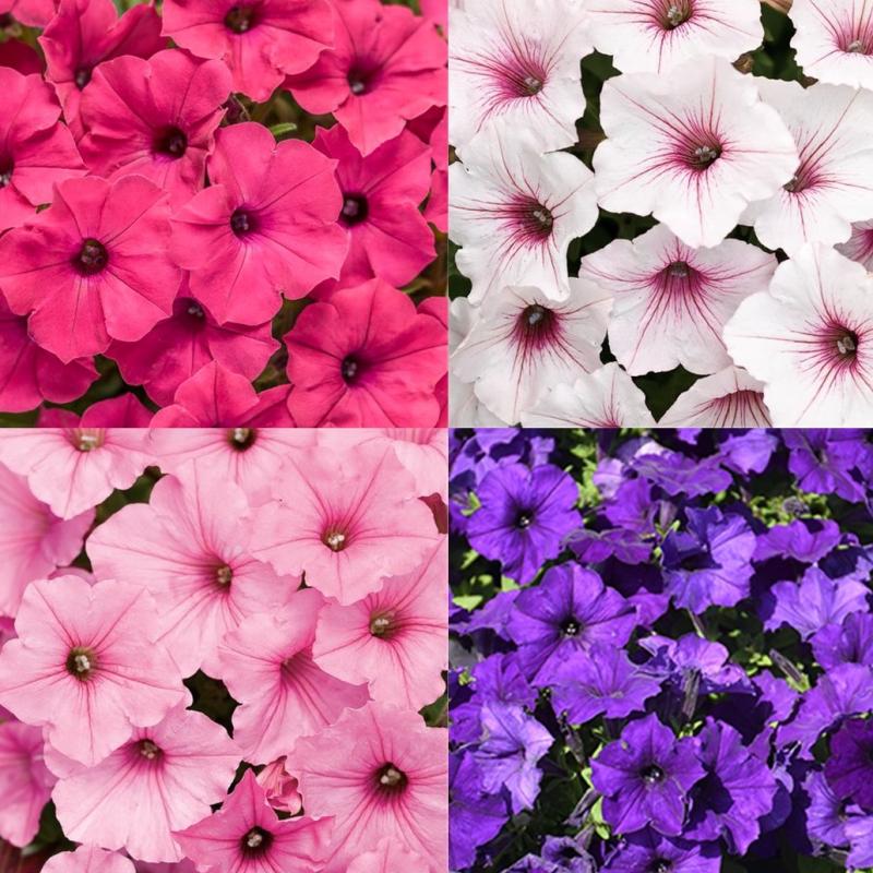 Petunia Supertunia Vista Mix of Bubblegum, Fuchsia, Silverberry, Petunia Easy Wave Blue