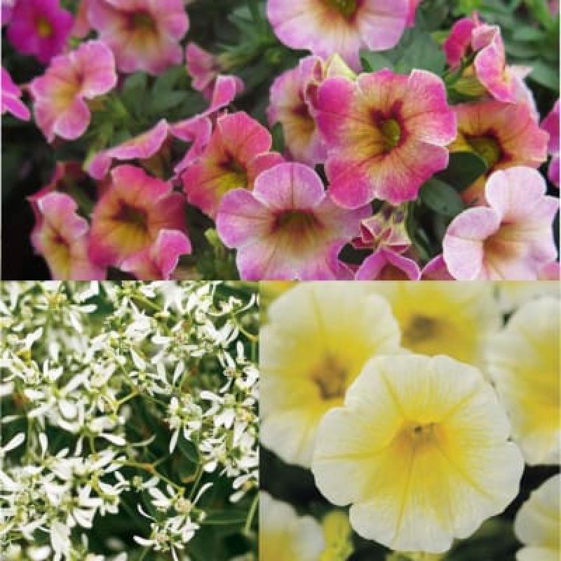 Euphorbia Diamond Frost, Petunia Easy Wave Yellow , Calibrachoa Chameleon Pink Splash