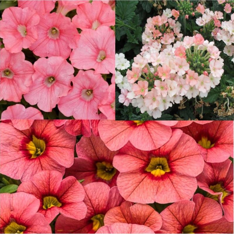 Petunia Supertunia Bermuda Beach, Verbena Estrella Peach, Calibrachoa Calitastic Papaya